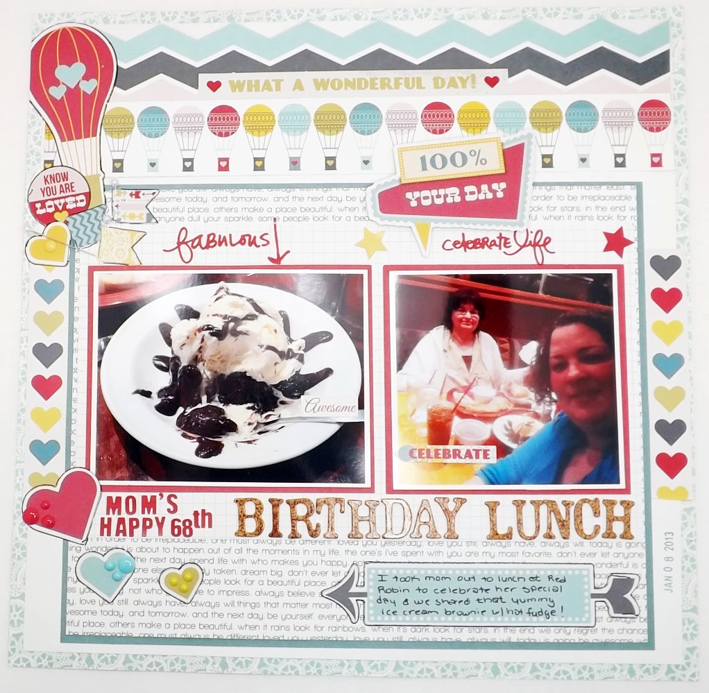Happy Monday everyone! Today I’m sharing a layout I made for my mom’s birthday using the It’s a Wonderful Day” collection by Fancy Pants.