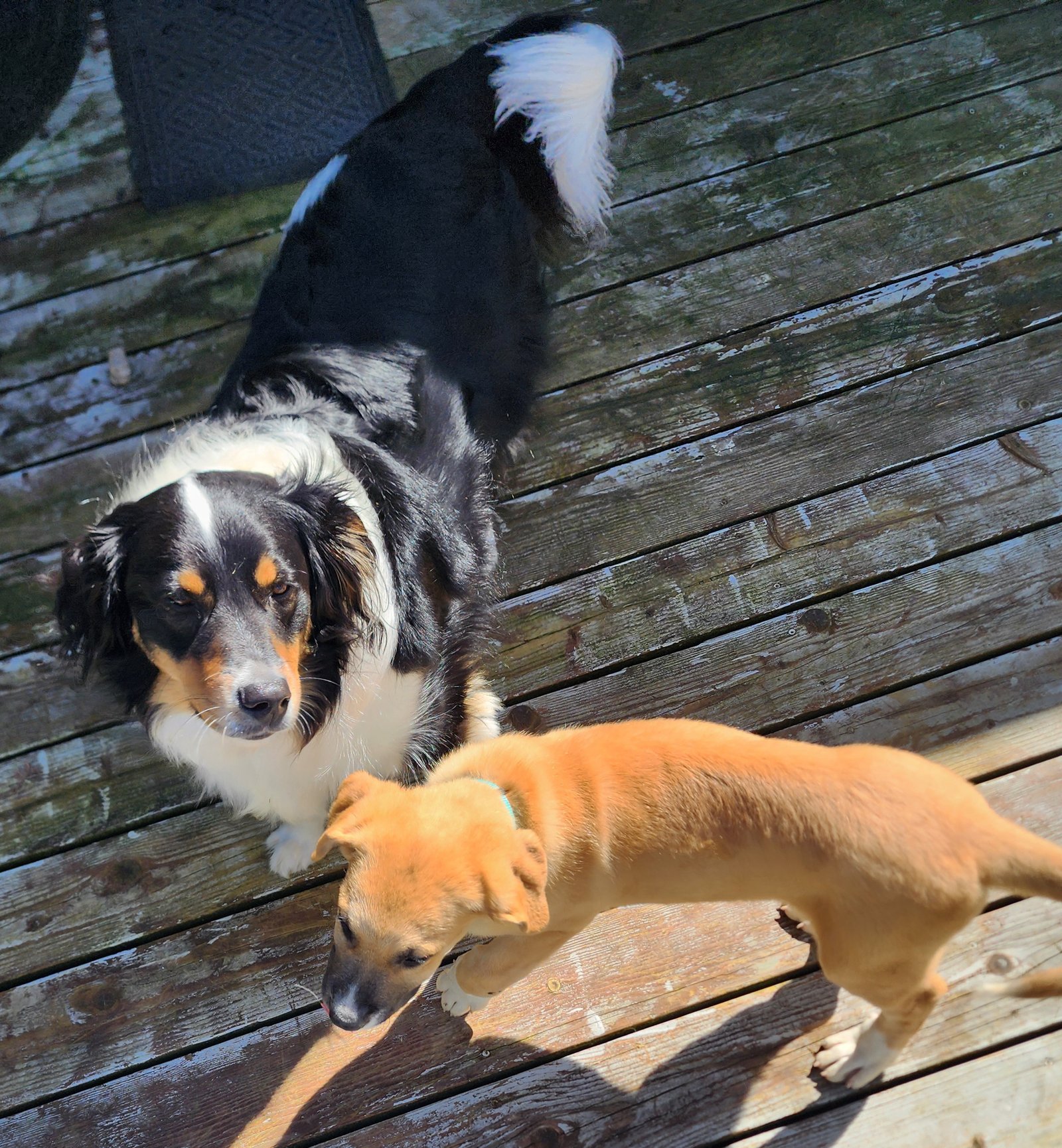 Bailey didn’t care for him for the first few days but now they are quickly becoming best buds! I haven’t seen Bailey play since Ava passed away and to see him playing with Ollie just makes my heart smile for him. He was laying around and being kinda sad for so long and started gaining weight because he wouldnt’ leave my side, only went outside to potty. Now his “zest” for life has returned!