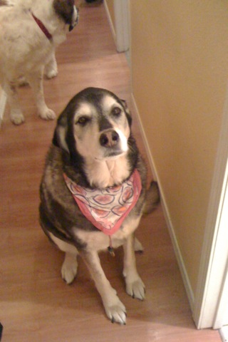 Abby was a stray and appears to have some hip problems but other than that (and the need for a bath and brush!), she appears to be healthy. I’m taking her to the vet on Monday so I’ll find out more but she is such a joy. The best way to describe her is like a big, lovable, obnoxious puppy in a 110 lb body! lol Ginger is not thrilled with her yet but you know good ole’ Ginger, she is patient and will love her sooner rather than later 🙂