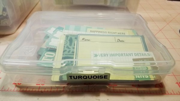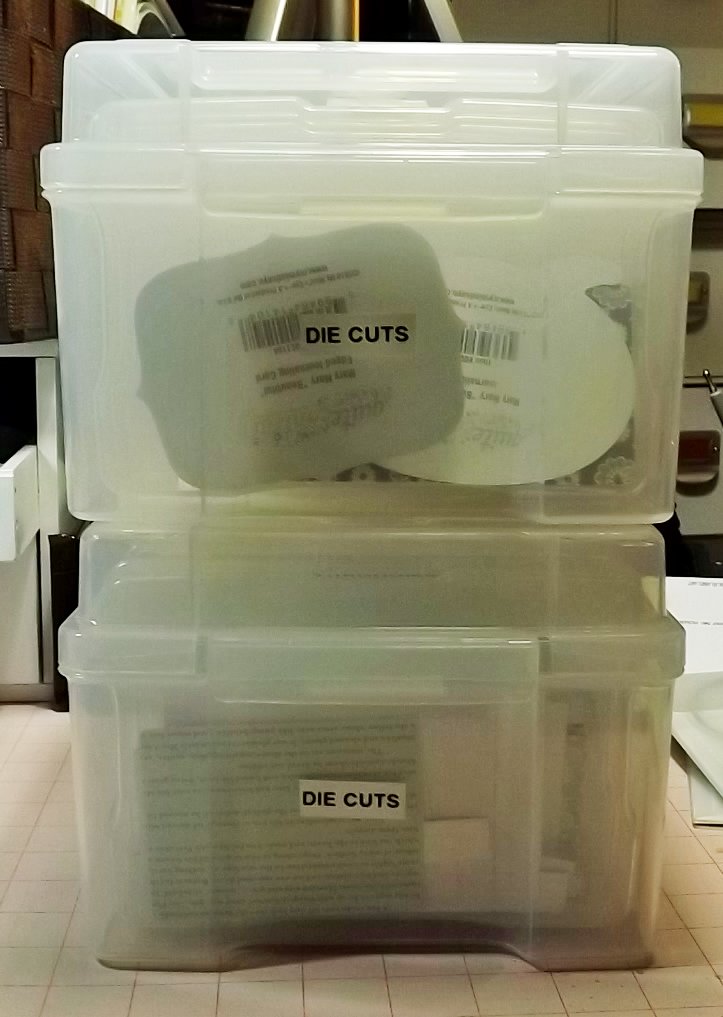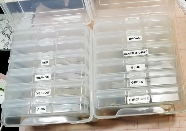 I labeled each of the smaller 4×6 photo boxes by color and separated my die cuts according to color. This is what I ended up with and how I’m organizing and storing my die cuts now: