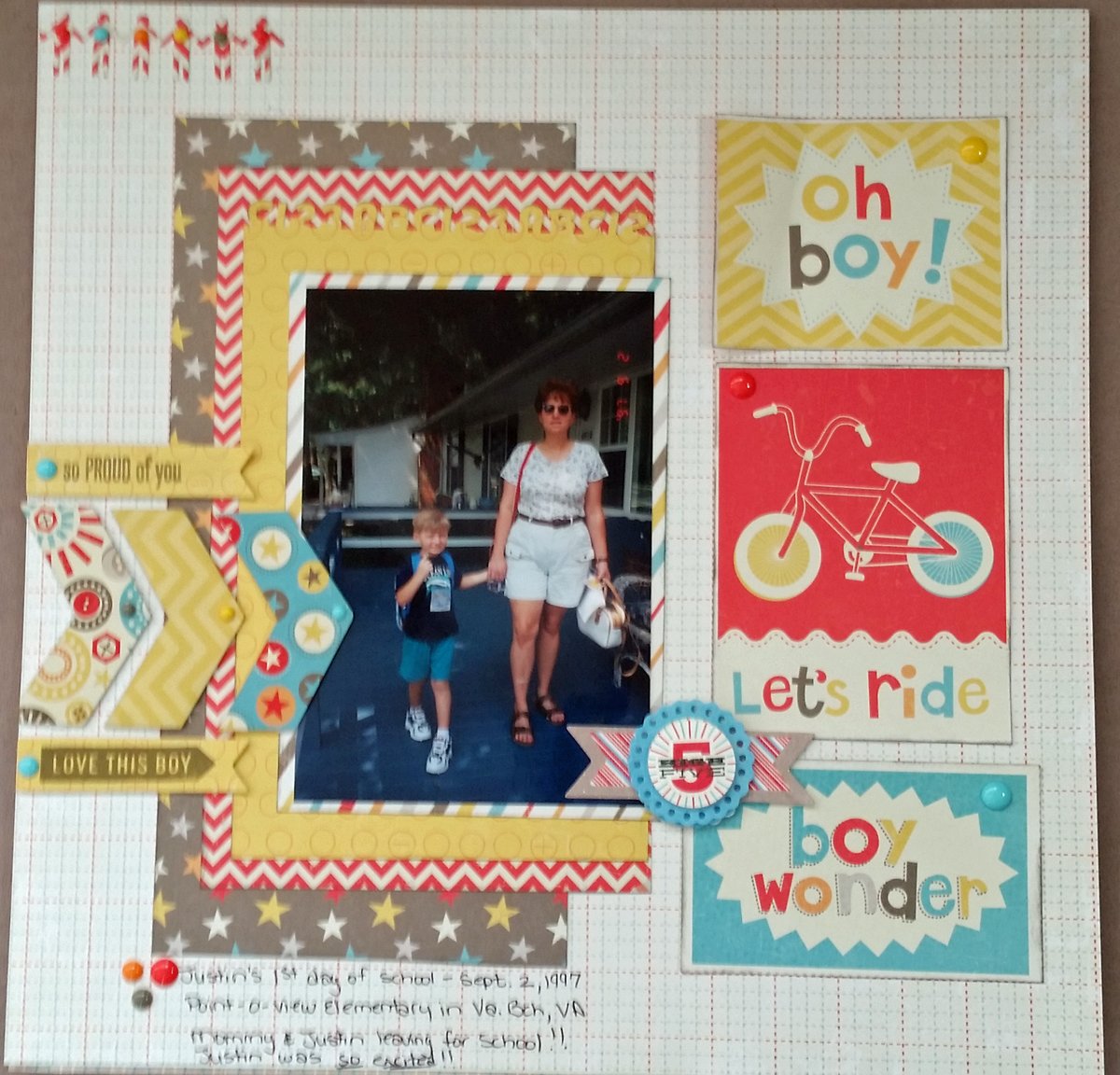 I am now a subscriber to the Hip Kit Club and several of these layouts were made with the July and August kits. The rest were made with collections from my stash. If you have any questions about any products I used, just holler at me and I’ll be happy to share that info with you. (Just click on the image to view it full size)